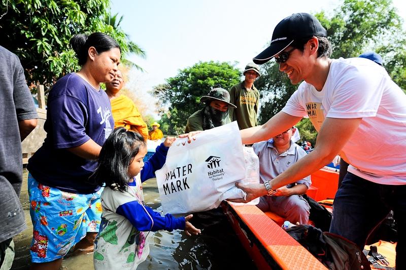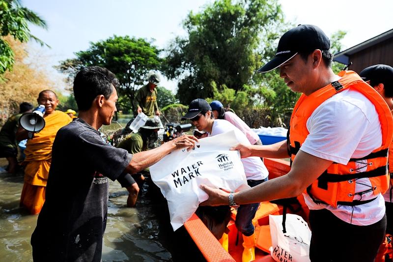 บริษัท ดิอาจิโอ โมเอ็ท เฮนเนสซี (ประเทศไทย) จำกัด ผู้ผลิตและจัดจำหน่ายเครื่องดื่มแอลกอฮอล์รายใหญ่ที่สุดในโลก จัดโครงการ "Watermark" ประทับรอยน้ำใจ ผนึกกำลังร่วมกับองค์การที่อยู่อาศัยเพื่อมนุษยชาติ (ประเทศไทย) ระดมความช่วยเหลือทั้งในระยะสั้นและระยะยาวจากอาสาสมัคร เพื่อเป็นพลังให้ผู้ประสบอุทกภัยสามารถกลับมายืนหยัดได้อย่างยิ่งใหญ่ โดยสามารถระดมอาสาสมัครคนรุ่นใหม่กว่า 300 คนจากทั่วทุกสารทิศทั้งชาวไทยและชาวต่างประเทศมาร่วมกันจัดทำถุงยังชีพจำนวน 3,000 ถุง เพื่อนำไปบริจาคให้ผู้ประสบภัยในจังหวัดลพบุรี ที่สนามฟุตบอลอารีน่า 10 ในวันเสาร์ที่ 19 พฤศจิกายน รวมทั้งยังได้รับความร่วมมือจากเหล่าเซเลบริตี้น้ำใจงาม กองทัพศิลปินจากค่ายจีเอ็มเอ็ม แกรมมี่ และค่ายโซนี่ มิวสิค เอ็นเตอร์เทนเมนท์ (ประเทศไทย) ไม่ว่าจะเป็น หญิง - สุกัญญา ไรวินทร์, ณัฐพล สารสาส,กิ๊ฟซ่า - ปิยา พงศ์กุลภา, บรม พิจารณ์จิตร เกลือ - กิตติ เชี่ยววงศ์กุล, ลูกหว้า - พิจิกา จิตตะปุตตะ, The Bottom Blues, Soulda, Good morning, Jetset'er, Mrs. Slave, ดาต้า - ดรัลชรัส ศุขีวิระยะ สมาชิกวง Baby Vox, The Gam ฯลฯ