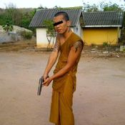 ทั้งนี้ภาพถ่ายดังกล่าว มีผู้ใช้เว็บไซต์พันทิพนำมาเผยแพร่ต่อ ระบุว่านำภาพมาจากในเว็บไซต์เฟชบุ๊ก เป็นภาพที่ชายห่มสบง โพสต์ท่าถ่ายรูปกับปืนพกสั้นในอากัปกิริยาต่างๆ ซึ่งกลายเป็นเสียงวิพากษ์วิจารณ์ในสังคมออนไลน์ เกี่ยวกับเรื่องความเหมาะสม และเรียกร้องให้หน่วยงานที่เกี่ยวข้องเร่งดำเนินการ