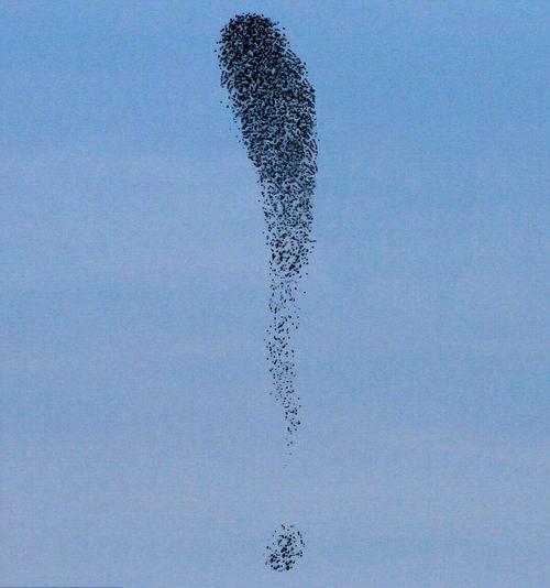 ตะลึง! นกบินรวมฝูงเป็นเครื่องหมายตกใจ