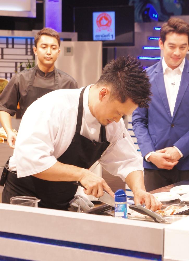 ก่อนจะลงสนามประลองก็ต้องโชว์ฝีมือ ปรุงอาหารสูตรพิเศษ ด้วยวัตถุดิบ "ปูอลาสก้า" กับเมนูที่ชื่อว่า "ปูอลาสก้า ซีอิ๊วญี่ปุ่น โชริโสะ" แค่เห็นขนาดและราคาของปูที่เชฟเอามา ก็ทำเอาแขกรับเชิญอย่าง ดีเจ.เชาเชา , กี้-รฐกร สถิรบุตร, ตั๊ก-ศิริพร ตื่นตาตื่นใจกันไปยกแรก