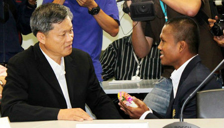 หลังจากที่"กำนันแก๊"นายประมุข โรจนตัณฒ์ ฟ้องร้องทั้งผู้จัดและตัวบัวขาวเองจนต้องเปิดโต๊ะเจรจากันโดยมีคนกลางอย่างการกีฬาแห่งประเทศไทย