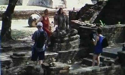 วิจารณ์ยับ! ฝรั่งสาวถ่ายรูปต่อองค์พระพุทธรูปไม่มีเศียร