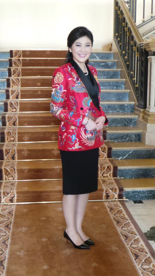นายกฯยิ่งลักษณ์ สวยงามในชุดสูทแดงลายมังกร รับวันตรุษจีน 2556