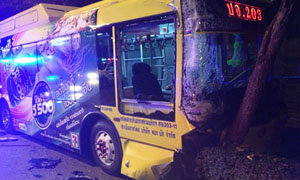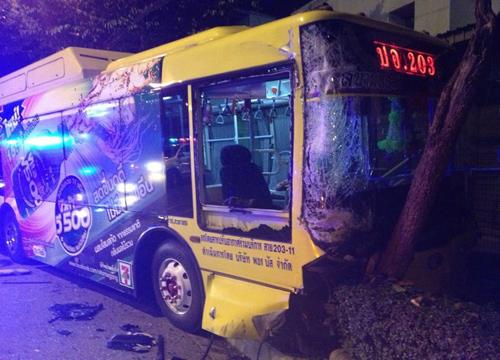 ปอ.203 พุ่งชนต้นไม้ จุดกลับรถสะพานพระราม 7 คนขับ–กระเป๋ารถเมล์เจ็บ ไร้ผู้โดยสาร เหตุหักหลบรถโม่ปูน