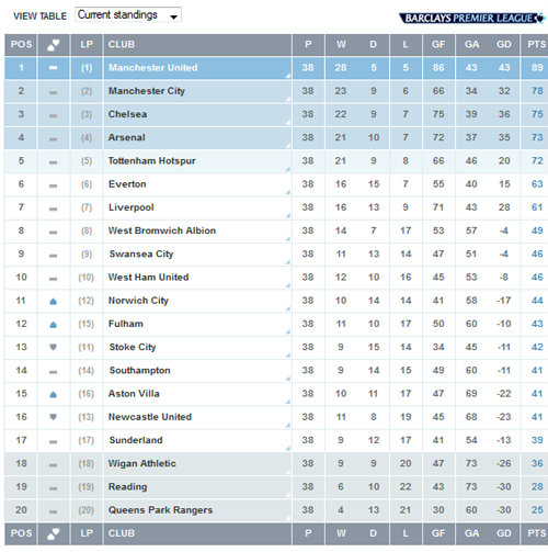 บทสรุปพรีเมียร์ลีก อังกฤษ ฤดูกาล 2012/2013