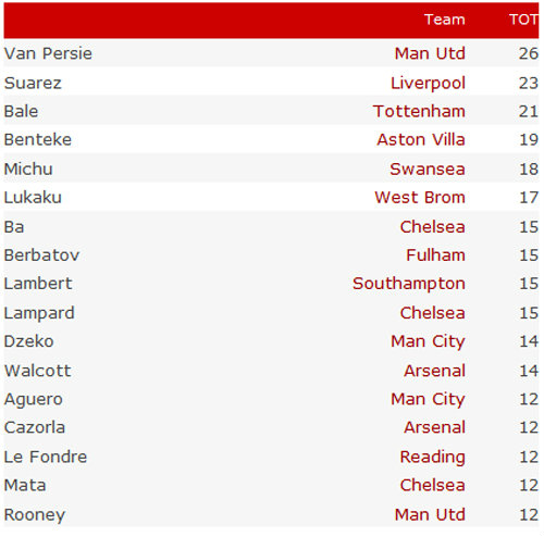 อันดับดาวซัลโว พรีเมียร์ลีก อังกฤษ : ประจำฤดูกาล 2012-2013