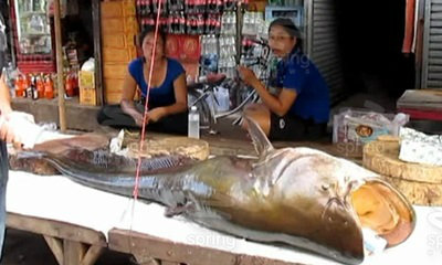 ผู้สื่อข่าวรายงานว่า ที่ จ.นครพนม พบปลาน้ำโขงขนาดใหญ่ ความยาวประมาณ 2 ม. น้ำหนัก ประมาณ 70 กก. โดยมีชาวบ้านที่ทำอาชีพประมง จับได้ในพื้นที่ อ.บ้านแพง จ.นครพนม ก่อนนำมาขายให้กับแม่ค้าตลาดปลาน้ำโขง ตลาดสดเทศบาลเมืองนครพนม ทำให้ชาวบ้านที่พบเห็นพากันแตกตื่น เนื่องจากเป็นปลาหายาก ที่ชาวบ้านเรียกว่า ปลาคูณ หรือ ปลาค้าวดำ เป็นปลาน้ำจืดที่ใกล้สูญพันธุ์ ถือว่าเป็นการจับได้ในพื้นที่นครพนม ในรอบกว่า 10 ปี ราคาขายตามท้องตลาดตกประมาณ กก.ละ 250 - 300 บาท รวมปลาตัวนี้มีราคาสูงถึงประมาณ 20,000 บาท