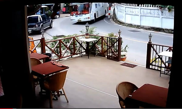 คลิปรถบัสที่ภูเก็ต พุ่งแหกโค้งชนทาวน์เฮาส์