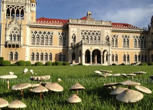 สื่อฮือฮา! เห็ดโผล่สนามหญ้าหน้าตึกไทยคู่ฟ้า