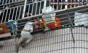 ระทึก! จนท.ช่วยชีวิตเด็กชาวจีนหัวติดราวระเบียงชั้น 6 (คลิป)
