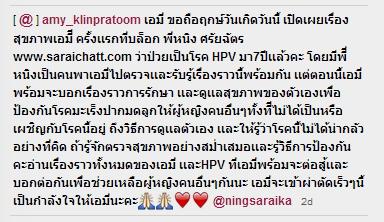 เอมี่ กลิ่นประทุม เผยต่อสู้โรค HPV นานกว่า 7 ปี