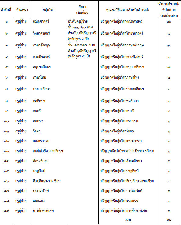 โดยเปิดสอบแข่งขันเพื่อบรรจุและแต่งตั้งในตำแหน่งครูผู้ช่วย