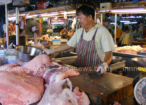 บรรยากาศ การซื้อขายเนื้อหมู ที่ตลาดสดเทศบาล 6 ร่วมใจ อ.เมือง จ.พิษณุโลก เป็นไปอย่างเงียบเหงา บรรดาพ่อค้าแม่ค้า กล่าวเป็นเสียงเดียวกันว่า ประชาชนซื้อเนื้อหมูลดลงอย่างเห็นได้ชัด นางณิศรา จตุวุฒิชัย ผู้ประกอบการเขียงหมูรายหนึ่ง เปิดเผยว่า ขณะนี้ ราคาเนื้อหมูชำแหละยังมีแนวโน้มแพงขึ้น พร้อมยอมรับว่า มีการขายเกินราคาแนะนำ เนื่องจากปัจจุบันราคาหมูหน้าฟาร์ม ขายอยู่กิโลกรัมละ 70 บาท หากขายตามราคาแนะนำของการค้าภายในก็จะขาดทุน และในระยะนี้ที่ค่าครองชีพของประชาชน พุ่งสูง สินค้าจำเป็นหลายชนิดต่างมีการปรับราคาแพงขึ้น ขณะที่รายได้ของผู้บริโภคยังเท่าเดิม ทำให้มีประชาชนจากที่เคยซื้อเนื้อหมู ครั้งละครึ่งกิโลกรัม หรือ 1 กิโลกรัม หันมาแบ่งซื้อย่อยครั้งละ 20-30 บาท ซึ่งที่ร้านก็จะตัดแบ่งขายให้ เพราะเข้าใจถึงความจำเป็นของผู้บริโภค
