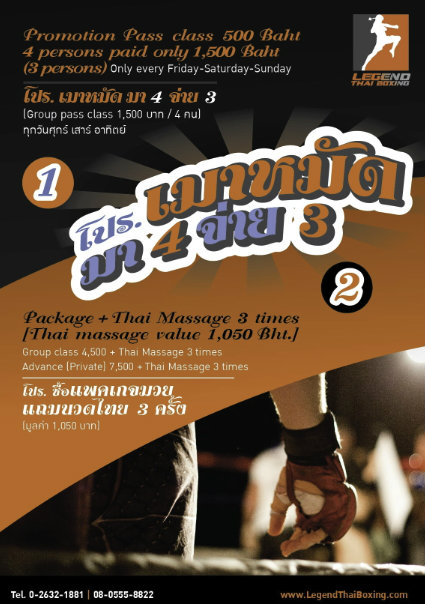 (มาเรียนมวยไทย 4 ท่าน จ่ายค่าเรียนเพียง 3 ท่านคือ 1500 บาท จากราคาเต็ม 2000 บาท)