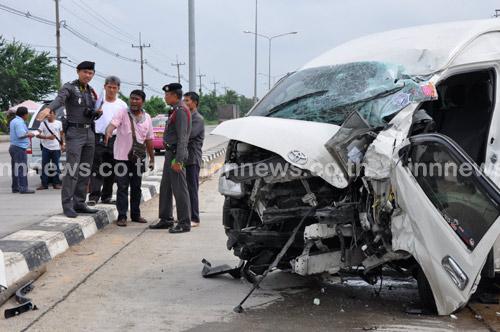 เกิดเหตุรถตู้วินมหาวิทยาลัยเกษตร กำแพงแสน พุ่งชนท้ายรถเฟอร์จูนเนอร์ ป้ายแดง เจ็บ 10 คน