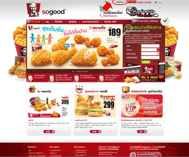 1.เข้าไปที่ www.kfc.co.th แล้ว login เข้าสู่ระบบ