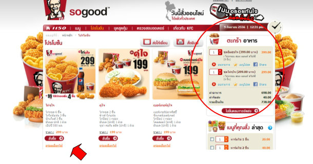 2. เลือกสั่งเมนูที่คุณต้องการ เพียงกดสั่งซื้อเมนูดังกล่าวจะเข้าไปอยู่ในตะกร้าอาหาร