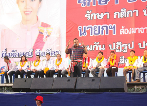 บรรยากาศของการปราศรัยใหญ่ของพรรคเพื่อไทย ที่ใช้ชื่อว่า "2 กุมภา เข้าคูหา รักษาประชาธิปไตย" ที่สนามกีฬาจังหวัดสุรินทร์ เป็นไปอย่างคึกคักซึ่งเต็มไปด้วยมวลชนคนเสื้อแดง ซึ่งเป็นฐานเสียงของพรรคเพื่อไทย จาก 17 อำเภอของจังหวัดสุรินทร์ และผู้สนับสนุนกว่า 10,000 คน โดยมีแกนนำพรรคเพื่อไทย สลับการปราศรัยช่วยหาเสียงมุ่งเน้นให้เลือกทั้งพรรคทั้งคนเพื่อสานงานเป็นรัฐบาลต่อไป ประกอบด้วย นายจาตุรนต์ ฉายแสง รองนายกรัฐมนตรี นายณัฐวุฒิ ใสยเกื้อ รมช.พาณิชย์ นายจตุพร พรหมพันธุ์ นางธิดา ถาวรเศรษฐ์ น.พ.เหวง โตจิราการ ส.ส.บัญชีรายชื่อพรรคเพื่อไทย และแกนนำคนเสื้อแดงจำนวนมากที่เพิ่งเดินทางจากการช่วยปราศรัยที่ จ.บุรีรัมย์ เมื่อช่วงบ่ายที่ผ่านมา หลังจากเสร็จเวทีปราศรัยที่ จ.สุรินทร์ ทั้งหมดจะเดินทางไปเปิดเวีปราศรัยใหญ่ เพื่อช่วยหาเสียงที่ จ.ศรีสะเกษ ต่อไปในคืนนี้