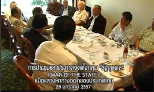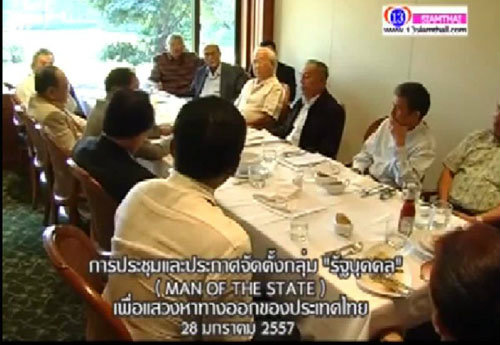 กำลังเป็นที่ฮือฮาของสังคมไทยในขณะนี้ เมื่อได้มีการเผยแพร่คลิปประชุมลับของอดีตเหล่าทหารระดับบิ๊กเนม กับ นักวิชาการ เพื่อจัดตั้งกลุ่ม รัฐบุคคล หรือ Man of the State เพื่อหาทางออกให้กับประเทศไทย โดยได้ประชุมกันตั้งแต่วันที่ 28 ม.ค. 57 ที่ผ่านมา ที่สโมสรโปโลคลับ ลุมพินี ซึ่งคลิปดังกล่าวได้ถูกโพสต์โดย "fmtv asoke" และได้ออกอากาศทางช่อง 13 SiamThai TV