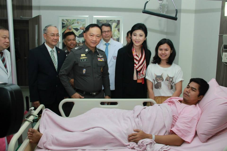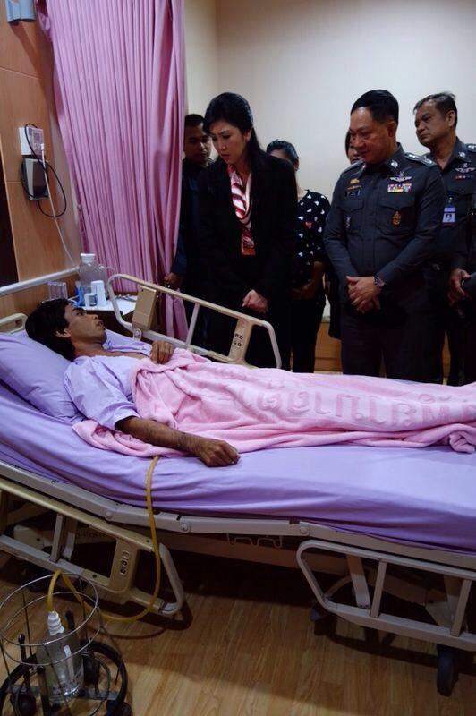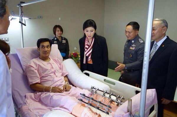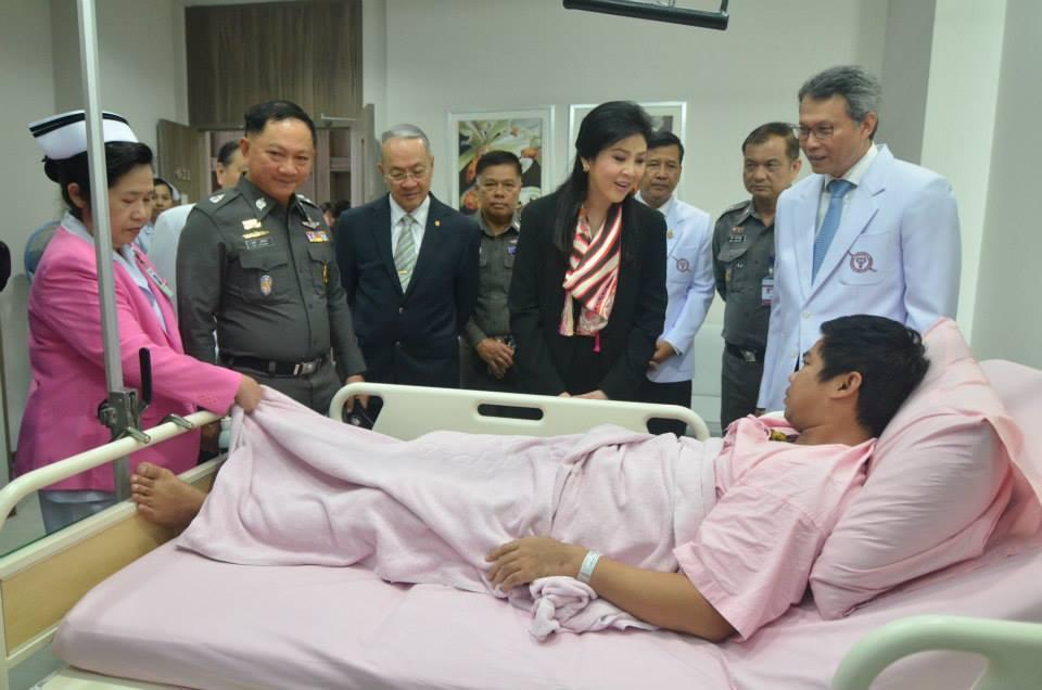 นายกฯ รุดเยี่ยมยามโดนจับถ่วงน้ำและให้กำลังใจตำรวจ ก่อนไปประชุม ครม.น.ส.ยิ่งลักษณ์ ชินวัตร นายกรัฐมนตรี เดินทางไปที่โรงพยาบาลตำรวจเยี่ยม รปภ.ที่โดนจับถ่วงน้ำพร้อมให้กำลังใจตำรวจที่ได้รับบาดเจ็บขณะปฎิบัติหน้าที่