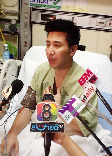 ส่วน "หนุ่ม-กรรชัย กำเนิดพลอย" ให้สัมภาษณ์กับสื่อมวลชนบนเตียงผู้ป่วยในห้องซีซียู หรือห้องพักผู้ป่วยหนักหัวใจ โรงพยาบาลวิภาวดี ด้วยอาการอ่อนเพลีย ถึงอาการป่วยหัวใจเต้นผิดปกติ ระบุว่า เข้าโรงพยาบาลมา ตั้งแต่กลางดึกวานนี้ เพราะรู้สึกใจสั่นและหัวใจเต้นเร็วผิดปกติ แพทย์ตรวจร่างกายอย่างละเอียดพบว่าหัวใจเต้นสะดุดซึ่งสามารถพบได้ในคนทั่วไป ไม่มีอันตราย แม้แพทย์จะยืนยันว่าตนไม่ได้ป่วยเป็นโรคหัวใจแต่ก็ยังกังวลเพราะคุณพ่อมีประวัติป่วยโรคหัวใจ ตลอดคืนวานนี้ นอนไม่ค่อยหลับเพราะกังวลและกลัวสิ่งเร้นลับ จึงตั้งใจว่าจะออกจากโรงพยาบาล ภายในคืนนี้