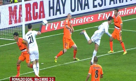 โดยลูกยิงสุดอาร์ทของ คริสเตียโน่ โรนัลโด้ เกิดขึ้นในเกมที่ เรอัล มาดริด เปิดบ้านเสมอกับ บาเลนเซีย 2-2 เมื่อ วันอาทิตย์ที่ 4 พฤษภาคม ที่ผ่านมา