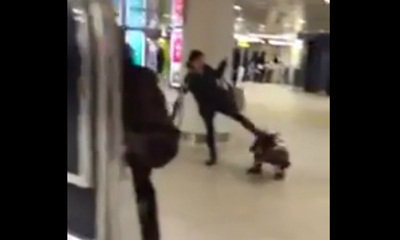 โลกด่ายับ! คลิปแม่เตะก้านคอลูกล้มคว่ำที่สถานีรถไฟ