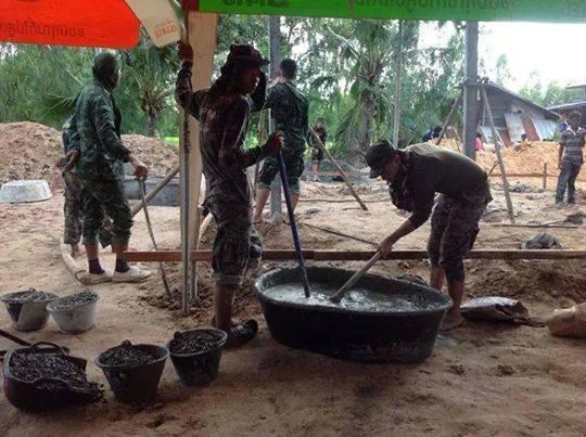 นอกจากยังได้โพสต์ภาพทหารได้เข้ามาช่วยเหลือสร้างบ้านใหม่ให้กับเด็ก ๆ อีกด้วย