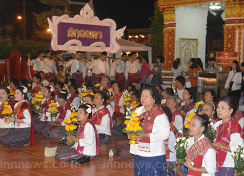 ชาวไทญ้อสกลนคร นำขันหมากเบ็ง ถวายเป็นพุทธบูชาต่อองค์พระธาตุเชิงชุม และหลวงพ่อองค์แสน สิ่งศักดิ์สิทธิ์คู่บ้านคู่เมือง