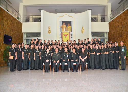 พลเอก วิเชียร ศิริสุนทร ผอ.ศูนย์ประสานงานโครงการอันเนื่องมาจากพระราชดำริและความมั่นคง นำคณะนักเรียนแพทย์ทหารปีที่ 2 วิทยาลัยแพทยศาสตร์ พระมงกุฎเกล้า จำนวน 105 นาย เข้าเยี่ยมชมนิทรรศการถาวรเฉลิมพระเกียรติ พระบาทสมเด็จ พระเจ้าอยู่หัว และศูนย์การเรียนรู้บ้านเศรษฐกิจพอเพียง ที่ศูนย์ประสานงานโครงการอันเนื่องมาจากพระราชดำริและความมั่นคง ต.คูคต อ.ลำลูกกา จ.ปทุมธานี