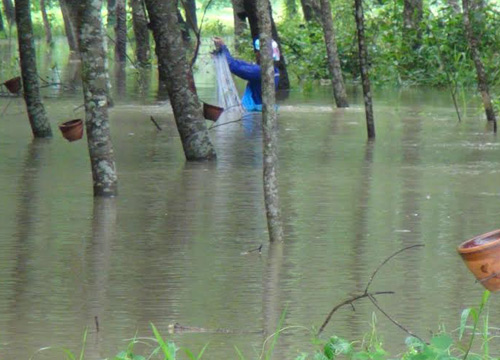 น้ำป่าหลาก ชาวสวนยางนครศรีฯ ลุยน้ำท่วมเก็บยาง