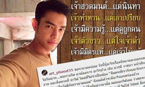 จู่ๆ พระเอกหนุ่มหุ่นแซ่บ อาร์ต พศุตม์ ก็ลุกขึ้นมาโพสต์ภาพคำคมธรรมะ พร้อมคำบรรยายที่ระบายความในใจ ความคับแค้นใจ เกี่ยวกับคนที่ประจบสอพลอเลียขาเจ้านาย และทำตัวเป็น "วัวลืมตีน" งานนี้หลายคนต่างคิดมโนกันไปต่างๆนานาว่าคนที่หนุ่มอาร์ตพูดถึงจะเป็นใคร?