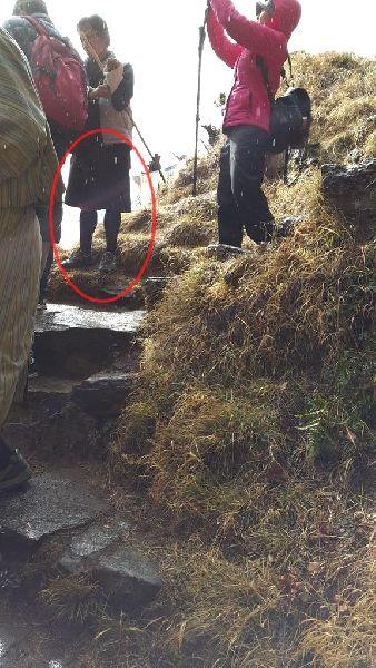 พบว่าจุดดังกล่าวเป็นทางเดินแคบๆ และลื่นมาก เพราะมีหมอกลงหนาน และเป็นจุดสิ้นสุดราวกั้นพอดี