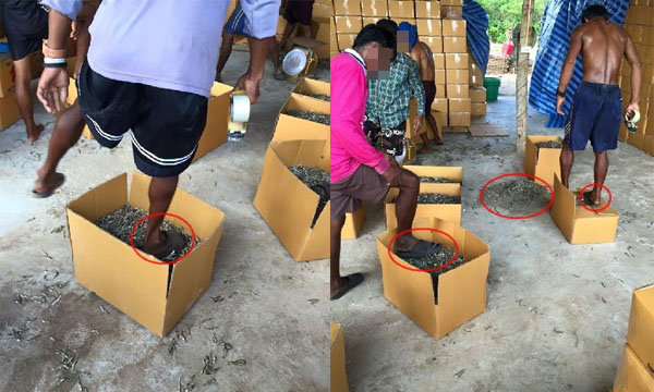 (15 ม.ค.) ผู้สื่อข่าวรายงานว่า เฟซบุ๊คชื่อ Prajug Dongsri ได้โพสต์ภาพน่าตกใจ ระบุว่า "นี่คือการแพ็คปลาแห้งที่ถูกวิธี" ซึ่งปรากฏภาพคนงาน 5-6 คนกำลังแพ็คกล่องบรรจุปลาตากแห้ง โดยใช้เท้าเหยียบให้ปลากะตักแห้งอัดกันแน่นในกล่องกระดาษ ก่อนจะใช้เทปปิดฝากล่อง โดยเจ้าของเฟซบุ๊คนี้ยังระบุด้วยว่า เหตุเกิดที่ปากน้ำระยอง