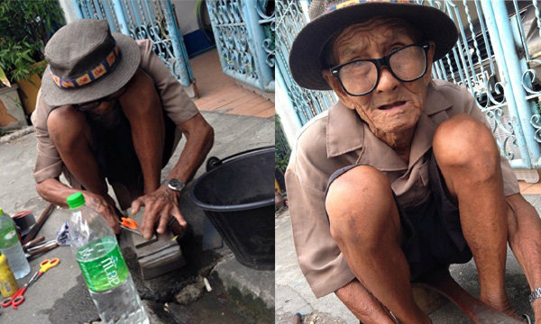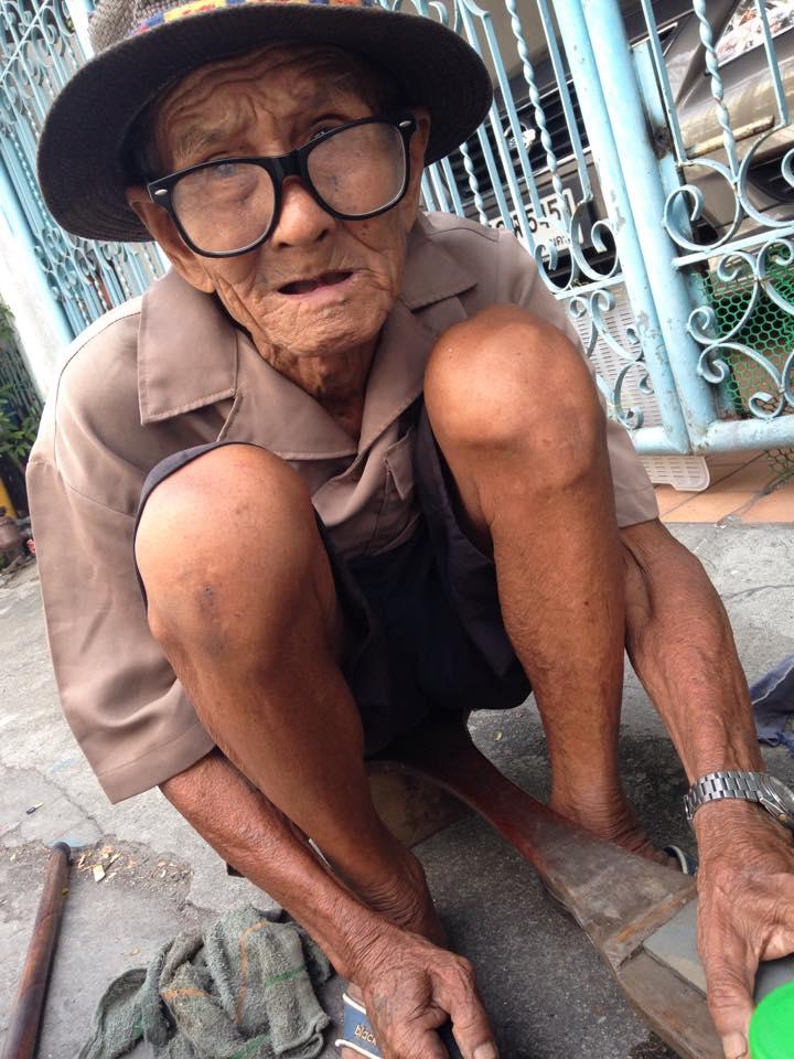 "เจอคุณตาลับมีดอีกแล้ว แกเป็นคนอุดร แกบอกไม่อยากรบกวนลูกๆ เพราะลูกๆ ก็ทำนา ไม่ค่อยมีเงิน เลยมาอยู่กทม. (แกพักอยู่ใต้ทางด่วนบางนา ) อายุ 80 กว่าแล้วยังต้องเดินเท้า รับจ้างลับมีดไปเรื่อย อันละ 5 บาท 10 บาท 20 บาท แล้วแต่ขนาด ตอนนี้แกกำลังเดินไปสำโรง สายใน ถ้าใครเห็นแก สงสารแก เอามีดให้แกลับหน่อยนะครับ"