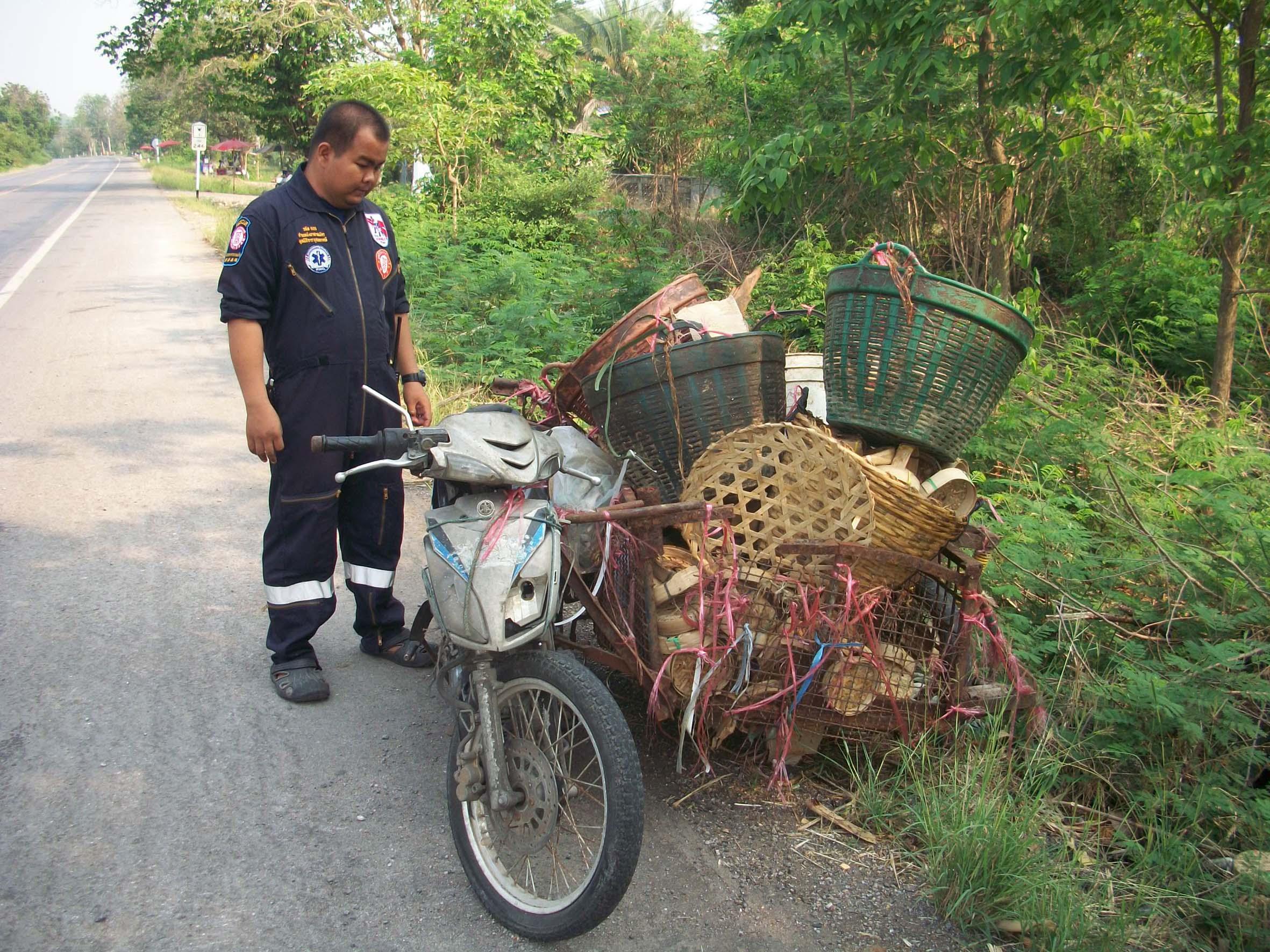 เพราะเปลี่ยนท่า? ลุงปลาทูไม่นอนขี่จยย.ชนราวสะพานหัวแตกลุงปลาทูสู้ชีวิต เปลี่ยนท่าไม่นอนขี่จยย.เหมือนเคย เกิดหลับในชนราวสะพานหัวแตก รถพังยับเยิน