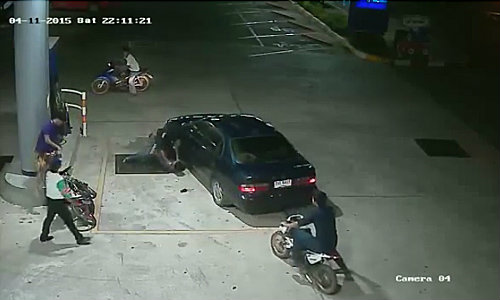 ระหว่างนั้นชายวัยรุ่น 2 คน ที่อยู่ในที่เกิดเหตุจะรีบวิ่งไปขึ้นรถจยย.ขับหนีไป โดยมีพนักงานปั๊มน้ำมันพยายามเข้ามาห้ามปราม ก่อนที่ชายชุดดำจะวิ่งขึ้นรถจจย.ของเพื่อนในกลุ่ม หลบหนีไปในเส้นทาง ถนนทางหลวงสาย 304 มุ่งหน้า ขาเข้าจาก อ.กบินทบุรี เข้าฉะเชิงเทรา