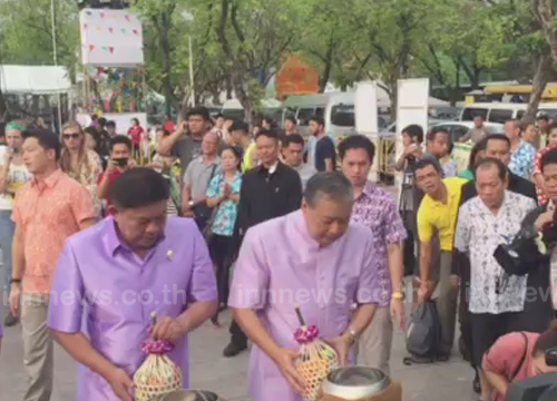 ผู้ว่ากทม.ปธ.ทำบุญตักบาตรสนามหลวงวันสงกรานต์