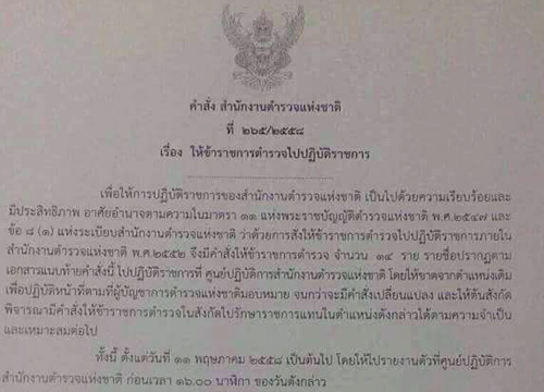 ทั้งนี้ ให้รายงานตัวภายใน 11 พ.ค. โดยให้ไปรายงานตัวที่ ศปก.ตร. ก่อนเวลา 16.00 น. ของวันดังกล่าว