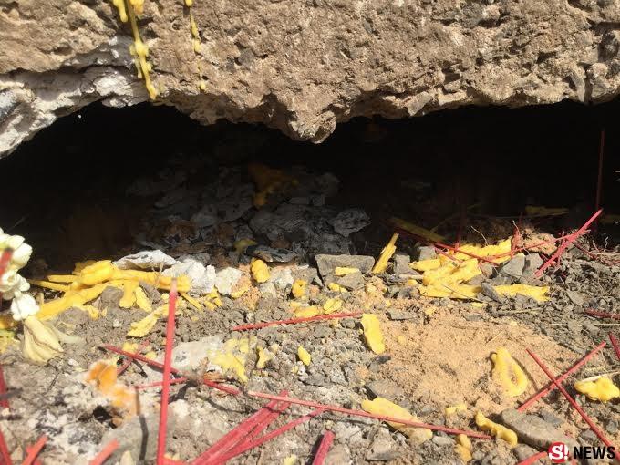 ขณะที่ชาวบ้านต่างพากันก้มดูว่ามีอะไรอยู่ใต้ถนนบ้าง บางคนก็บอกว่าเห็นเป็นหัวพญานาค บางคนก็บอกว่าเห็นเป็นพระพุทธรูป โดยถนนดังกล่าวอยู่ห่างจากป่าช้าวัดประมาณ 300 เมตร และเคยมีการขุดพบสิ่งของสมัยโบราณเป็นประจำ บางคนบอกว่าอาจมีการหมักหมมของแก๊สเกิดขึ้น