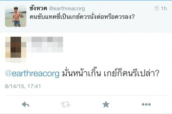 นอกจากนี้ เมื่อมีคนถามว่าแท็กซี่พูดอะไร หนุ่มเอิร์ธก็ทวิตตอบว่า "เค้าถามว่า...ใหญ่มั้ย ...เป็นรึป่าว"