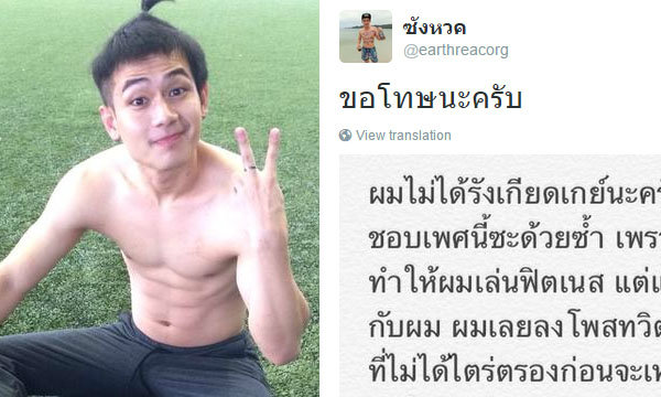 เอิร์ธ ธวัช ขอโทษโพสต์เหยียดเพศเกย์ ชี้ถูกคุกคามก่อน