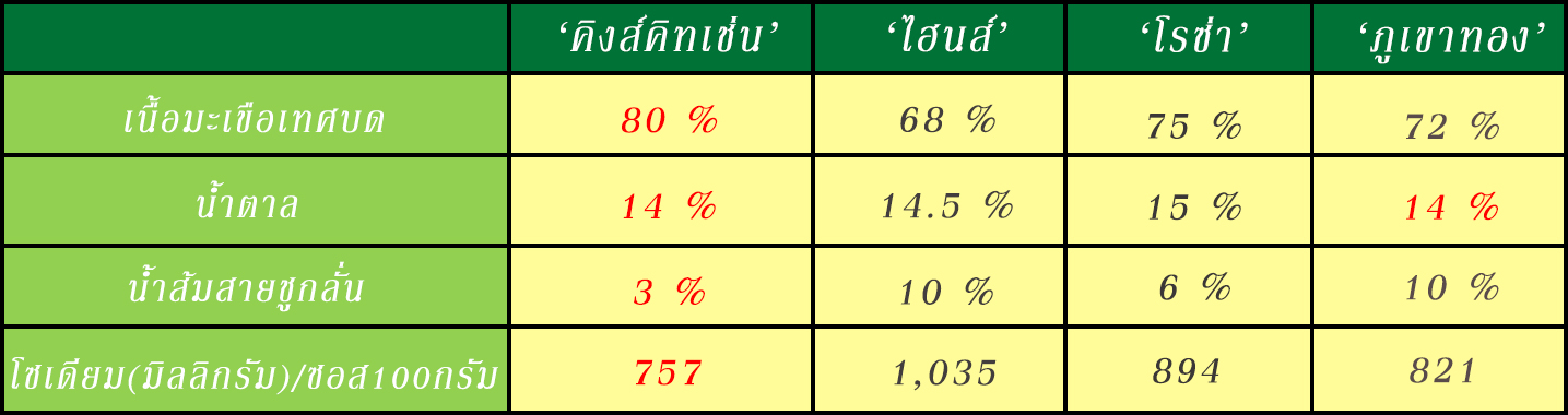 ตารางเปรียบเทียบส่วนประกอบของมะเขือเทศแต่ละยี่ห้อตามท้องตลาด