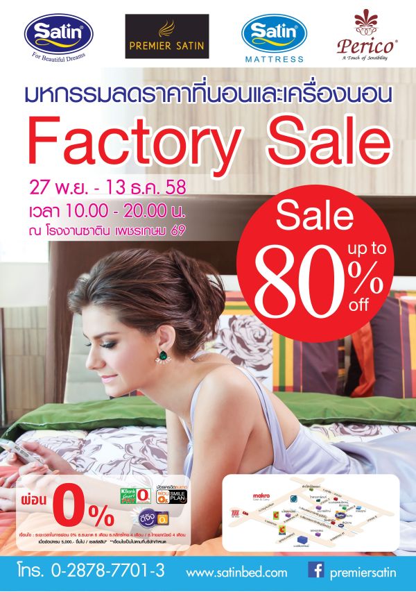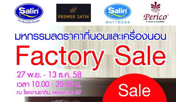 Satin Factory Sale Up to 80% มหกรรมลดราคาที่นอนและชุดเครื่องนอน