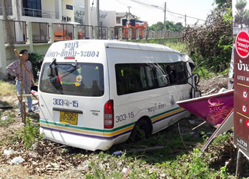 คืบหน้าเหตุรถตู้โดยสารชนเสาไฟฟ้า ริมถนนสุขุมวิท ขาเข้า อ.เมือง จ.ชลบุรี เสียชีวิต 4 ราย ล่าสุด ตำรวจภูธรแสนสุขให้รายละเอียดเพิ่มเติมว่ารถตู้คันดังกล่าวเป็นรถตู้โดยสารระยอง-ชลบุรี ทะเบียนป้ายเหลือง 10-2957 ระยอง ชนติดกับเสาไฟฟ้าแรงสูงจนหักสภาพรถพังยับเยิน พนักงานขับทราบชื่อ คือ นายแบน ไม่ทราบนามสกุล เสียชีวิตคาซากรถ ต้องใช้อุปกรณ์ตัดถ่างนำร่างออกมา ตรวจสอบโดยรอบพบผู้เสียชีวิตเป็นชายชื่อ นายเอก ไม่ทราบนามสกุล ผู้ช่วยคนขับ และผู้บาดเจ็บสาหัสเป็นหญิงชื่อ นางสาวกัญญา เกษมจิรกาญจน์ เจ้าหน้าที่รีบนำส่งโรงพยาบาลมหาวิทยาลัยบูรพา แต่ทนพิษบาดแผลไม่ไหวเสียชีวิตเป็นรายที่ 3 และรายที่ 4 คือ นางสุดใจ ศรีแก้ว รวม 4 ราย มี นายสมยศ เรียงแก้ว บาดเจ็บแขนขวาหัก