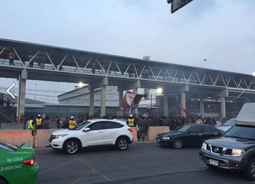 ทั้งนี้ ในเวลาเดียวกันภายในสนาม กำลังมีเกมส์การแข่งขันฟุตบอลโตโยต้า ไทยพรีเมียร์ลีกระหว่างทีมเอสซีจี เมืองทอง ยูไนเต็ด พบกับ นครราชสีมา มาสด้า เอฟซี โดยขณะนี้เจ้าหน้าที่ตำรวจกำลังอยู่ระหว่างเข้าควบคุมสถานการณ์ ความคืบหน้าจะรายงานให้ทราบต่อไป