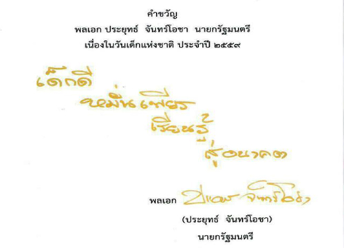 นายกรัฐมนตรี 'ประยุทธ จันทร์โอชา' มอบคำขวัญวันเด็ก ประจำปี 2559 'เด็กดี หมั่นเพียร เรียนรู้ สู่อนาคต'
