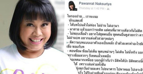 ซึ่งคงจะอัดอั๋นตันใจบางประการถึงกับต้องโพสต์ผ่านเฟซบุ๊ก Pawanrat Naksuriya แสดงความไม่พอใจถึงนักแสดงบางคนในกองถ่ายชอบทำตัวมีปัญหา ไร้วินัย ไม่อ่านบท สร้างความวุ่นวายทั้งกองถ่าย