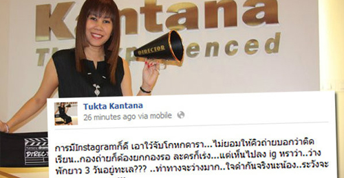 ส่วนอีกกรณี โพสต์ว่า มี Instagram ก็ดี เอาใว้จับโกหก พฤติกรรมของดารานักแสดงที่ไม่ให้คิวถ่ายละคร..หนีคิวถ่าย อ้างติดเรียน..แต่ไปโผล่อยู่ทะเล