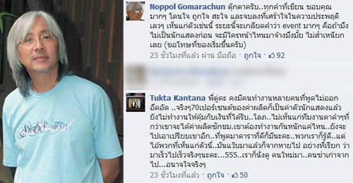 "ตู่ นพพล โกมารชุน" ส่วนนักแสดงและผู้จัดคนดัง"ตู่ นพพล โกมารชุน" ซึ่งเป็นอีกคนที่เข้ามาแสดงความคิดเห็น หลังจาก ตุ๊กตา กันตนา ออกมาโพสต์ตำหนิดารา บางรายที่รับงานอีเว้นท์จนไม่มีเวลาให้กองถ่ายละคร